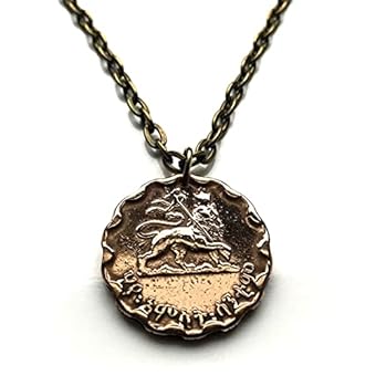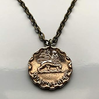 1944 Ethiopia 25 Santeem coin pendant Lion of Judah Haile Selassie Addis Ababa Rastafari Jewish tribe Adama African Abyssinian lion Oromo people Amharas Solomonic Lalibela Zion WWII era n000618