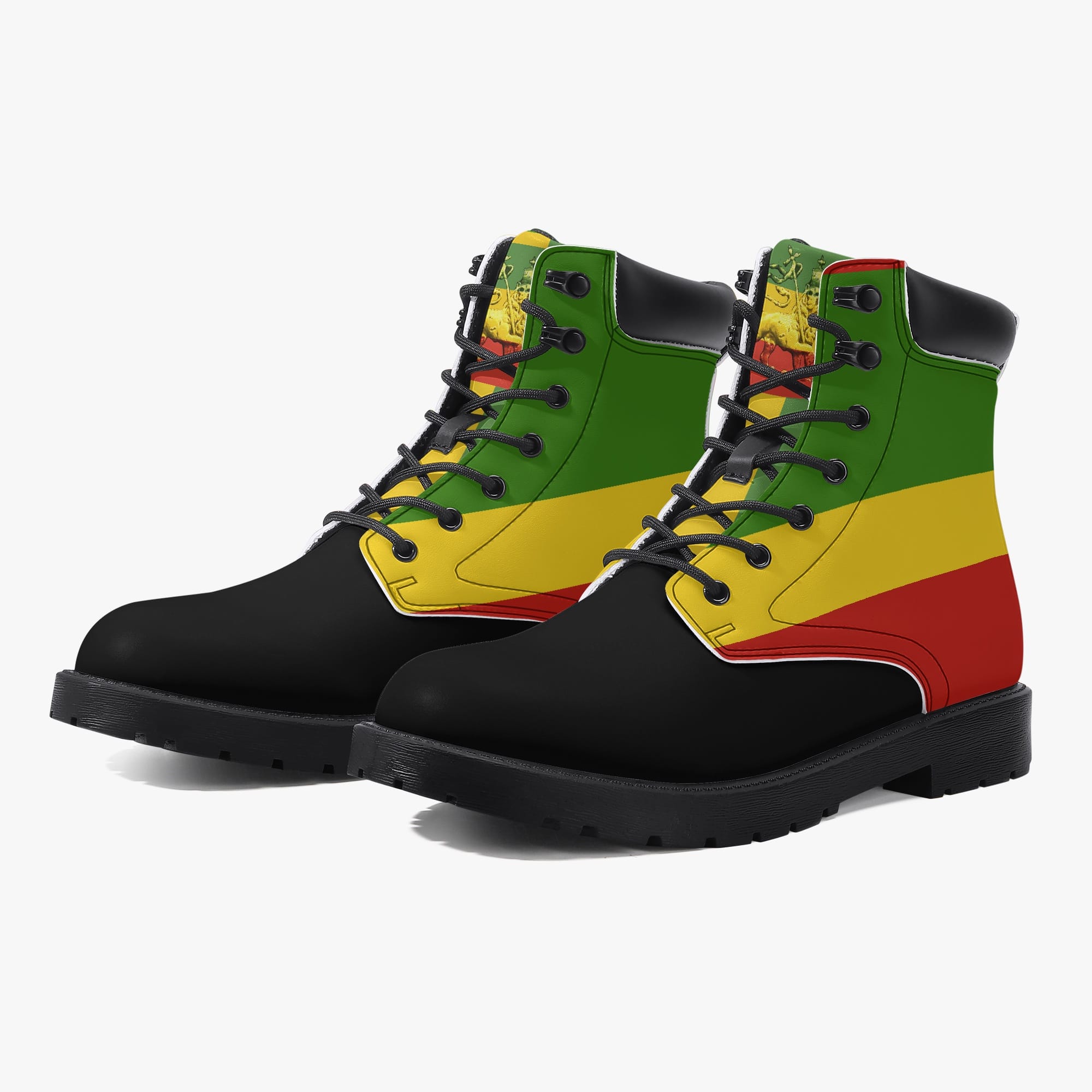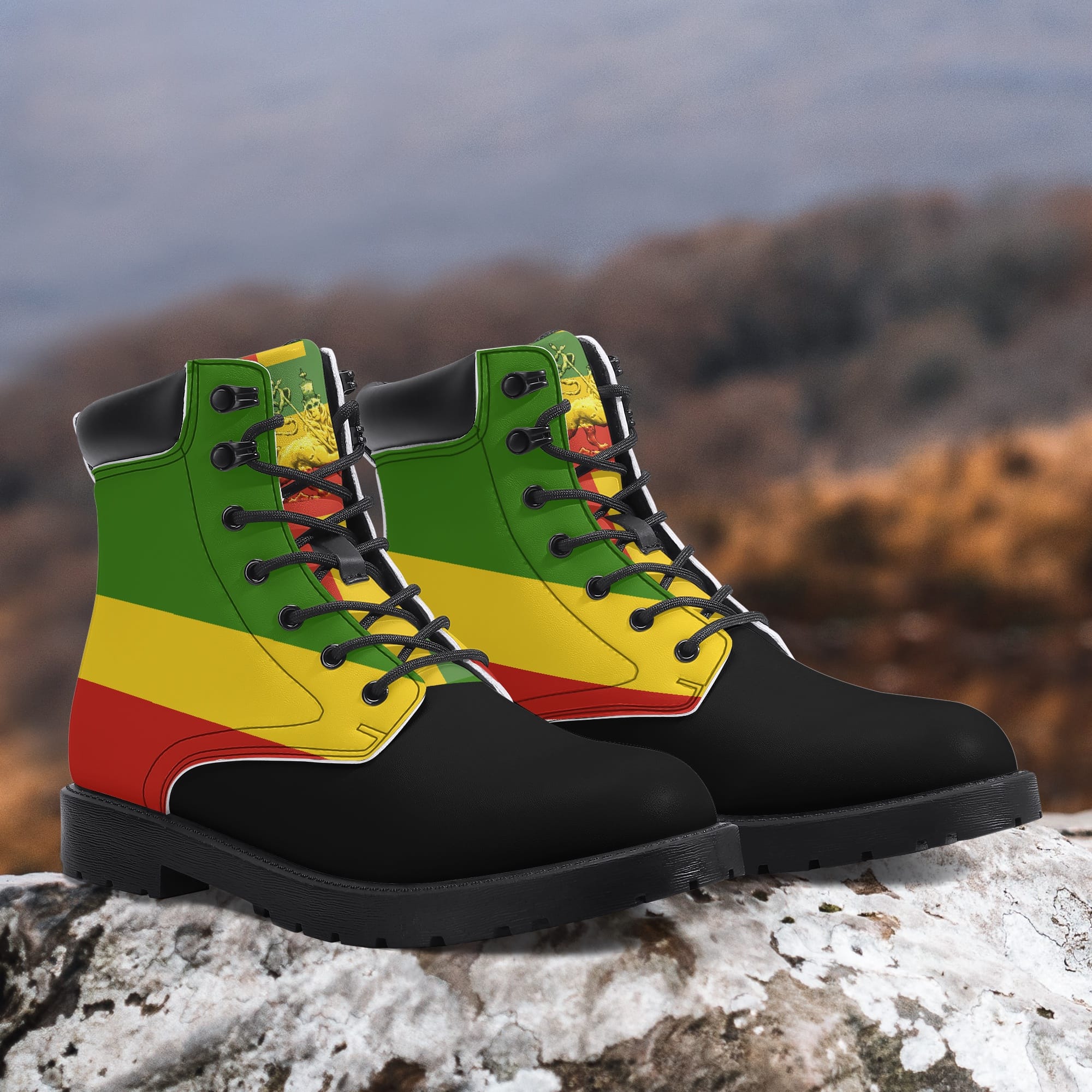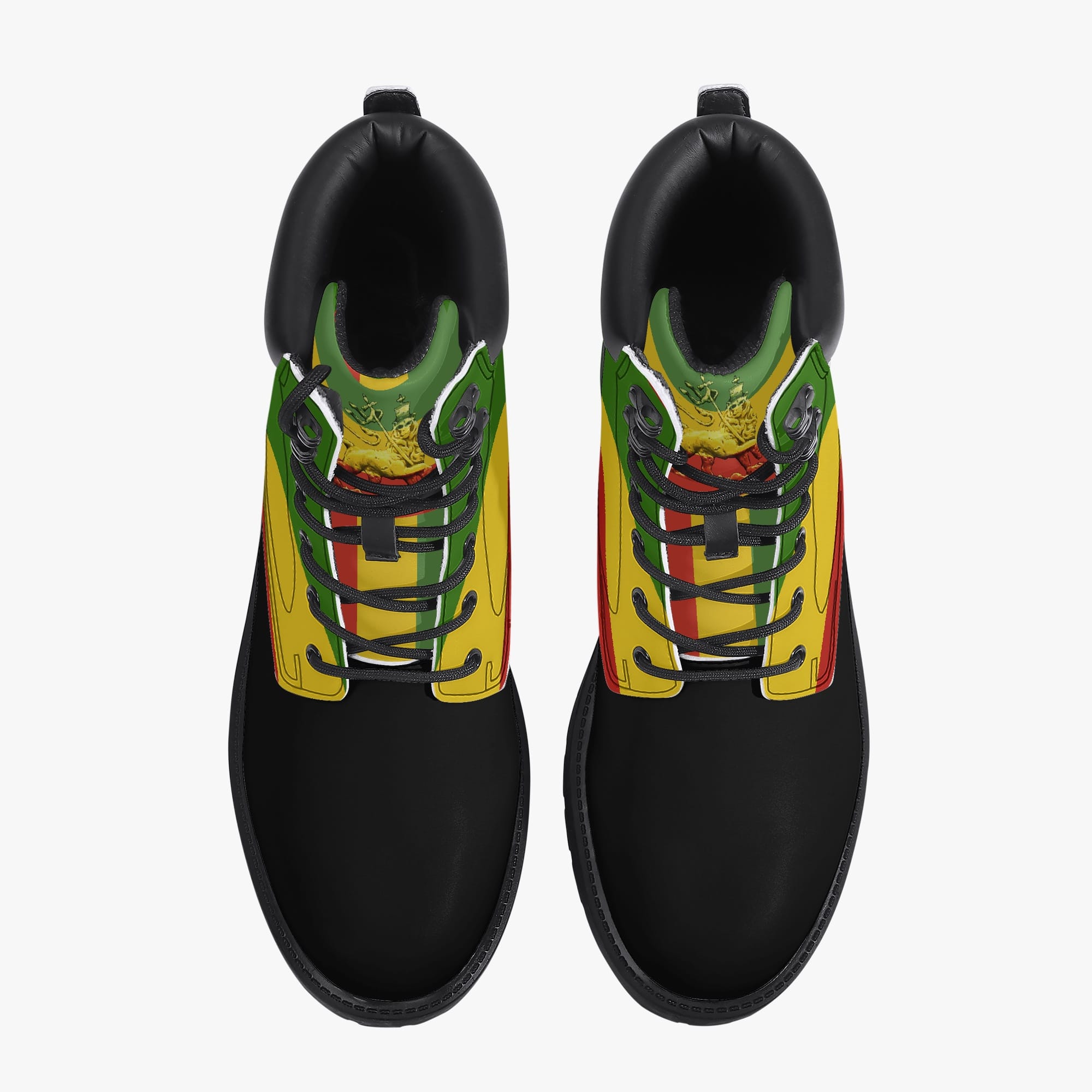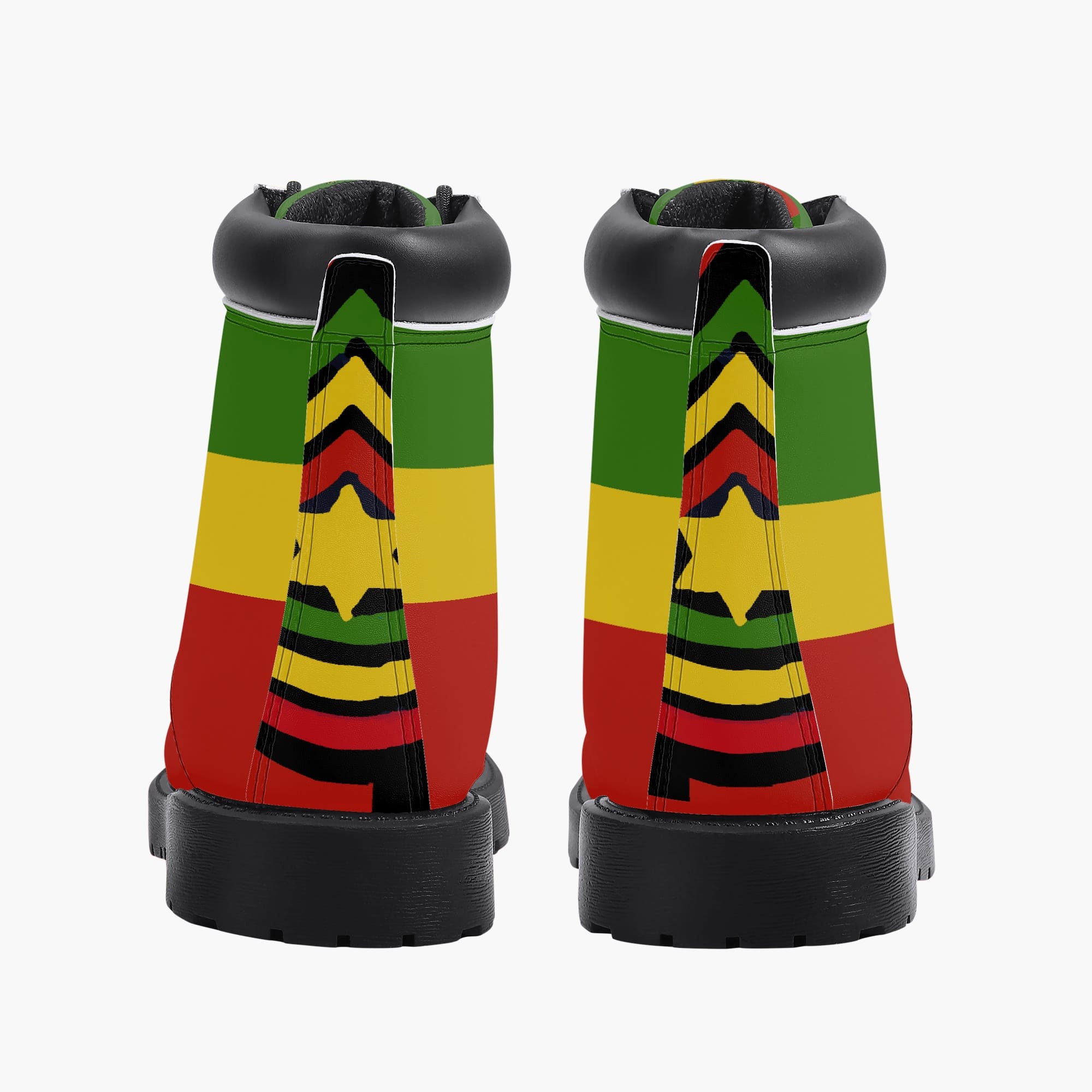 Rasta boots in the Rastafaran colors with Lion of Judah trim.