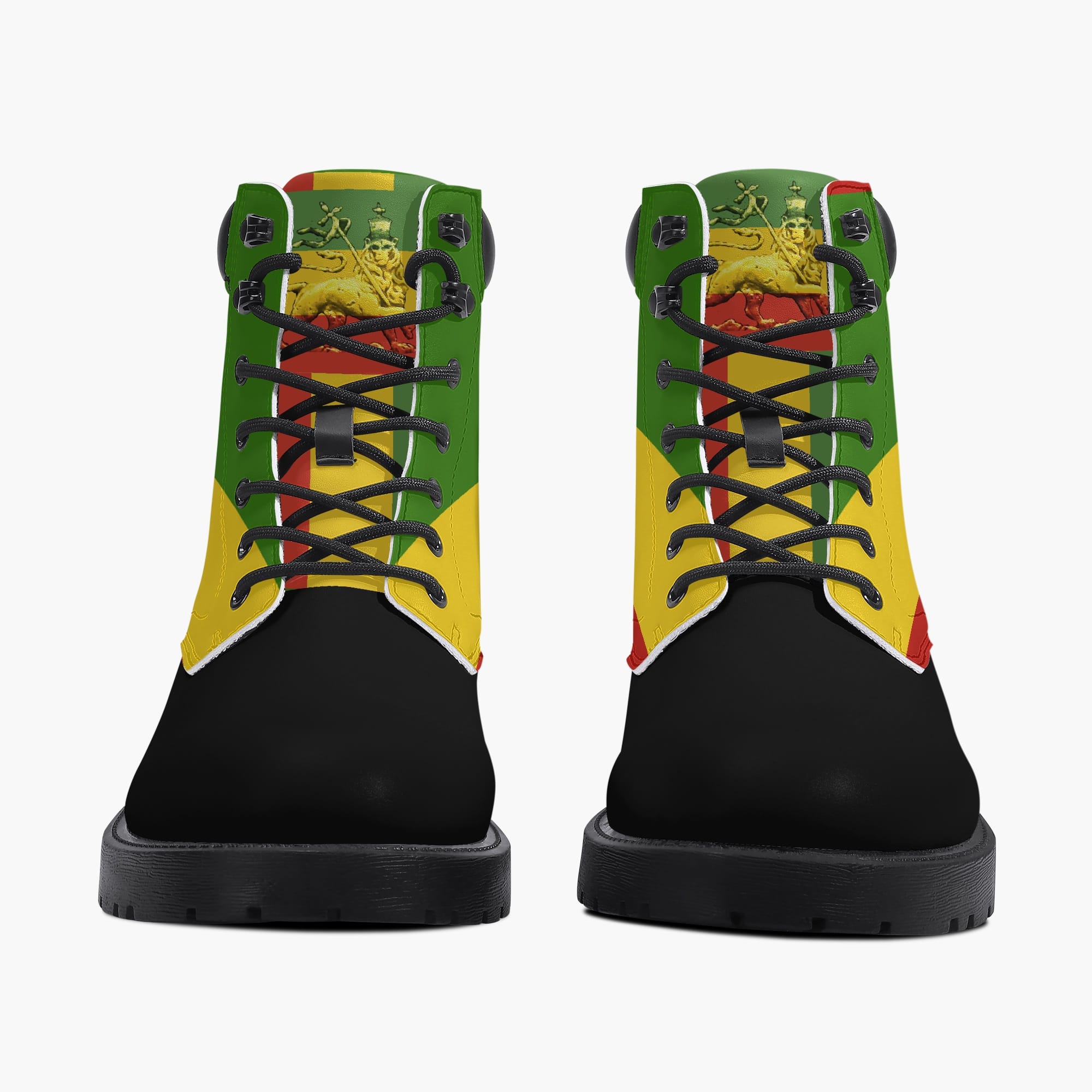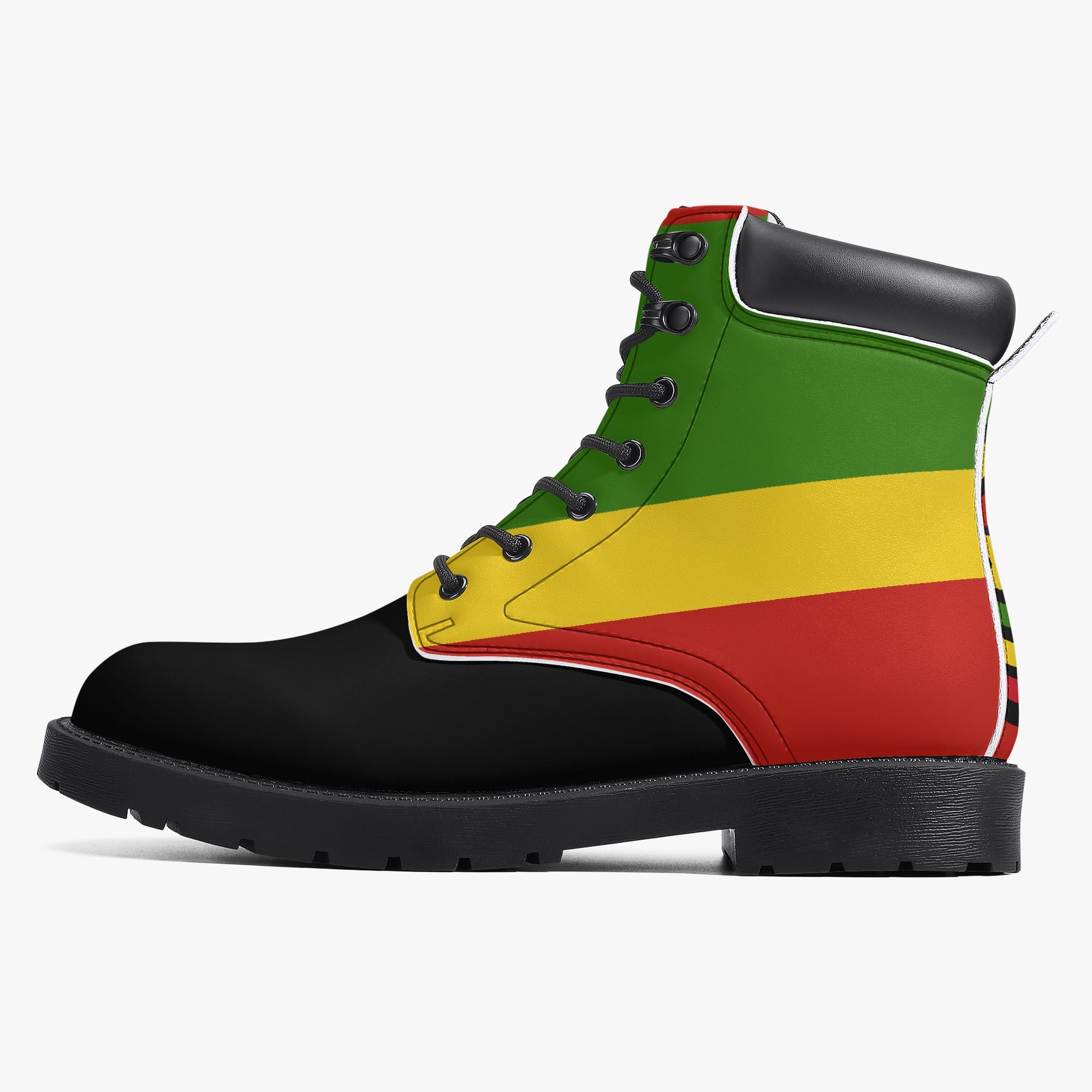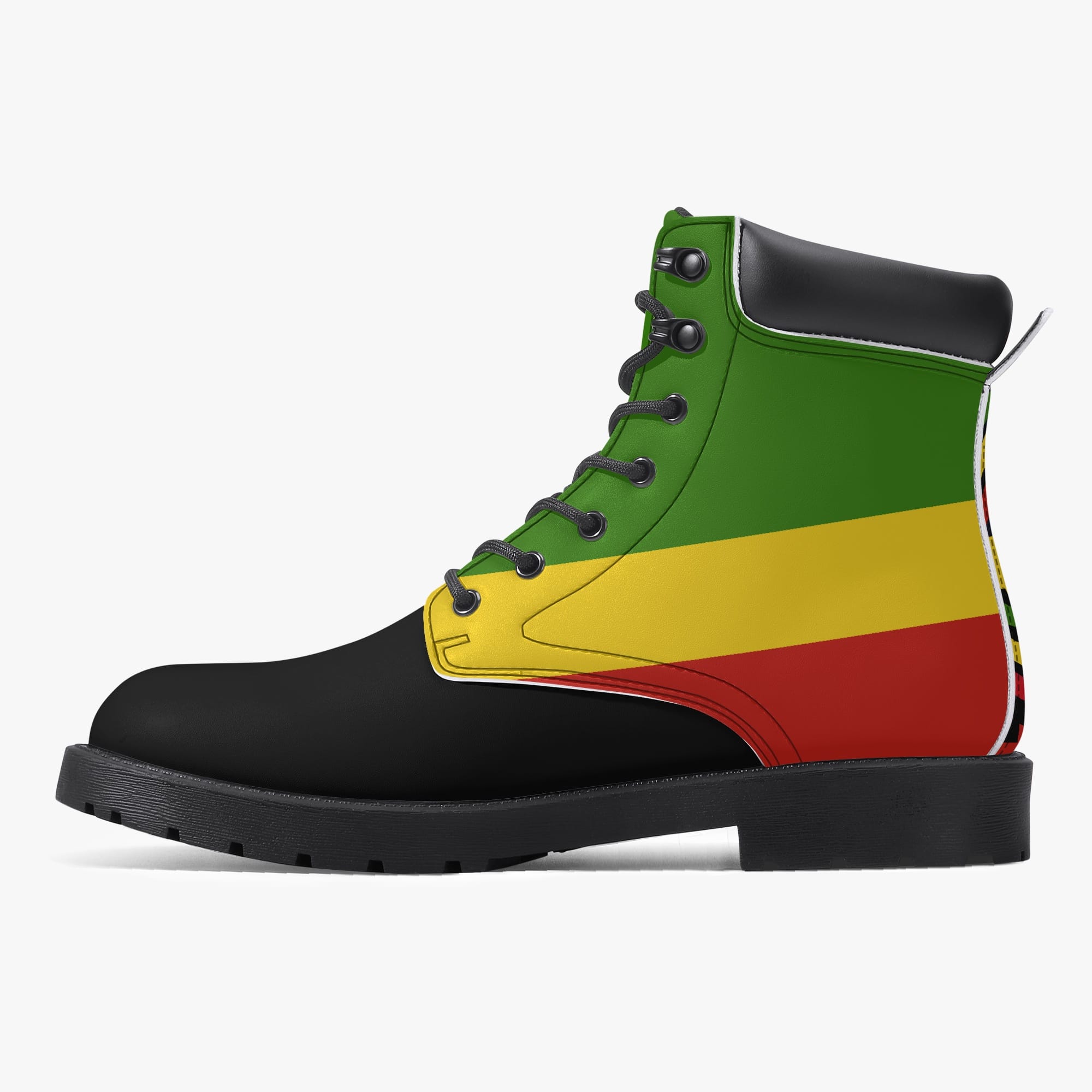 Rasta boots in the Rastafaran colors with Lion of Judah trim.