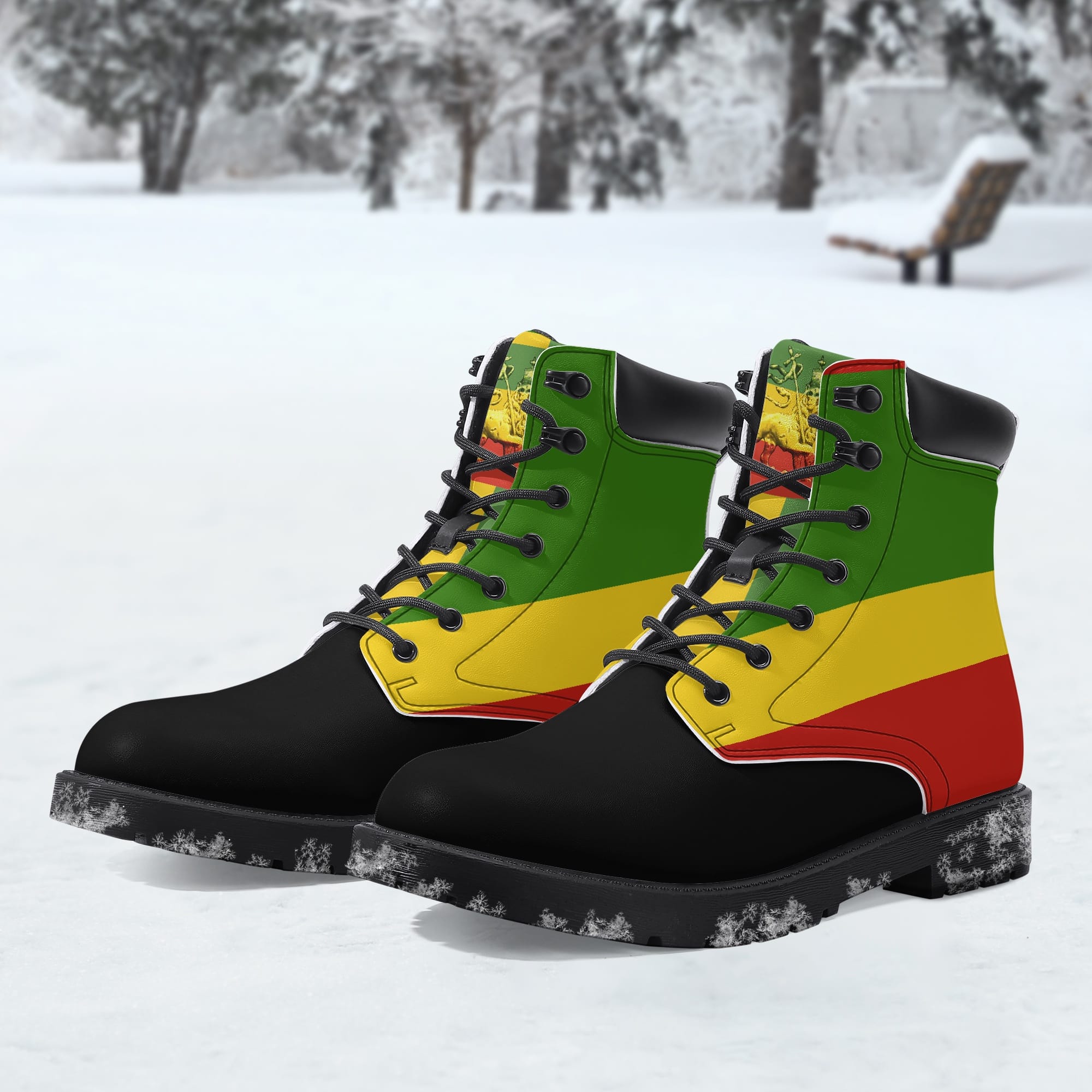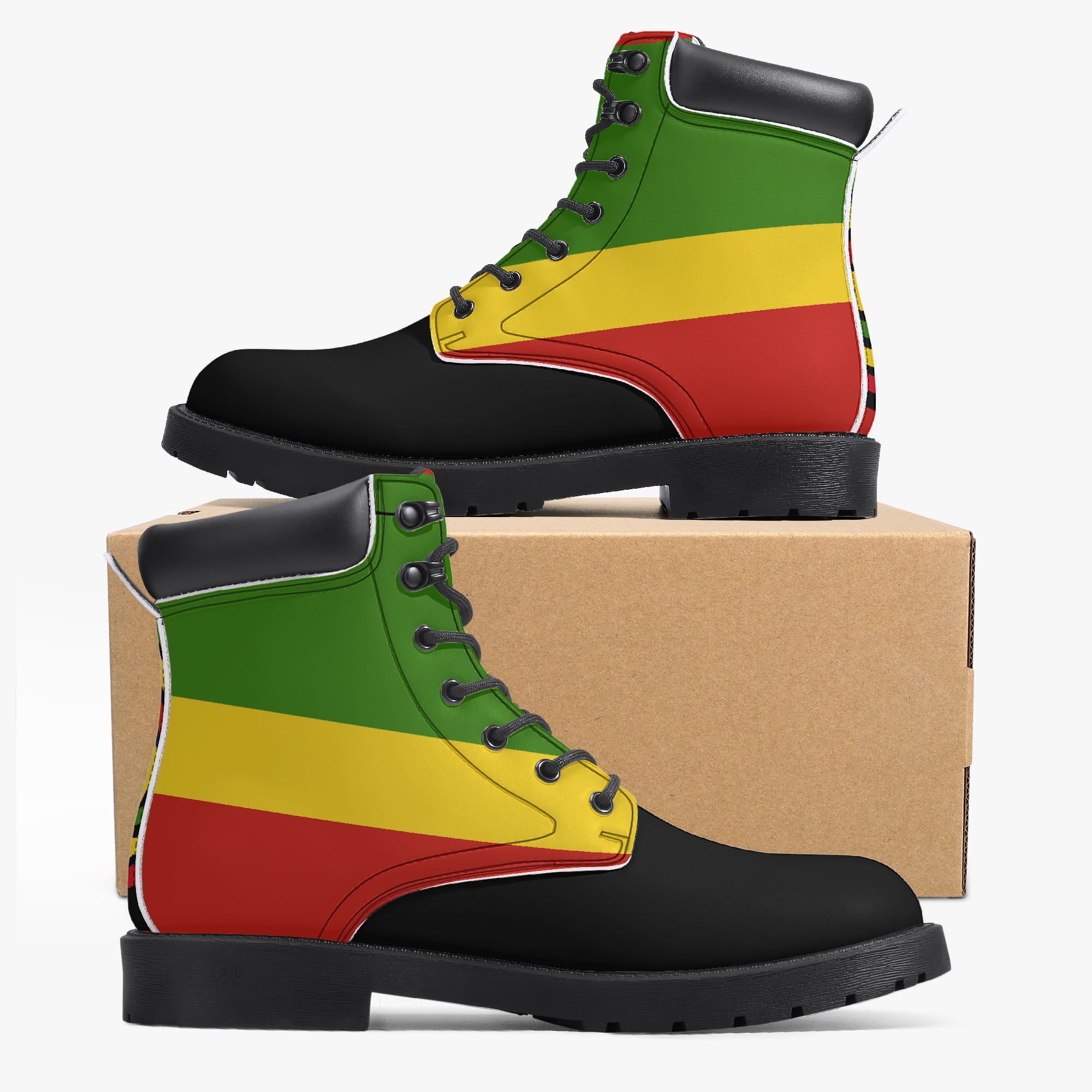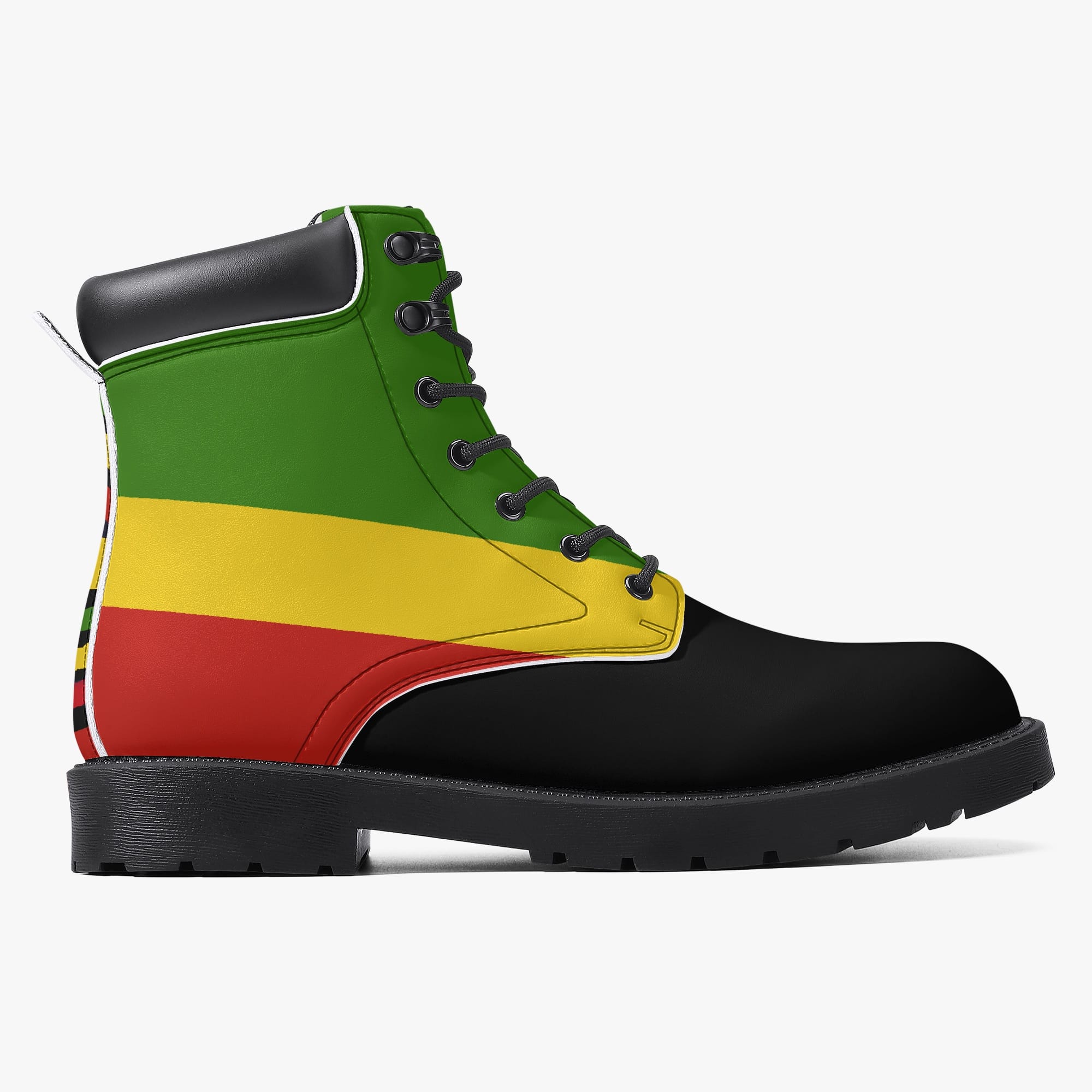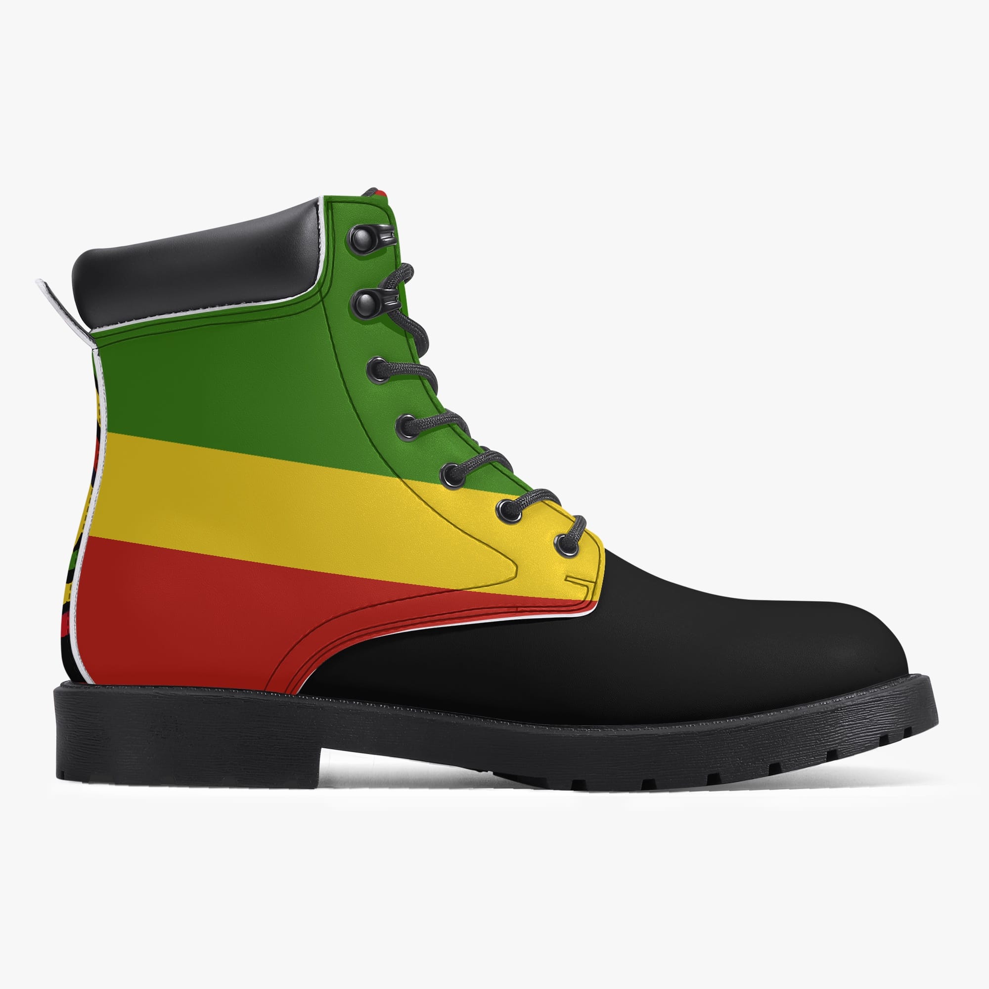 Rasta boots in the Rastafaran colors with Lion of Judah trim.