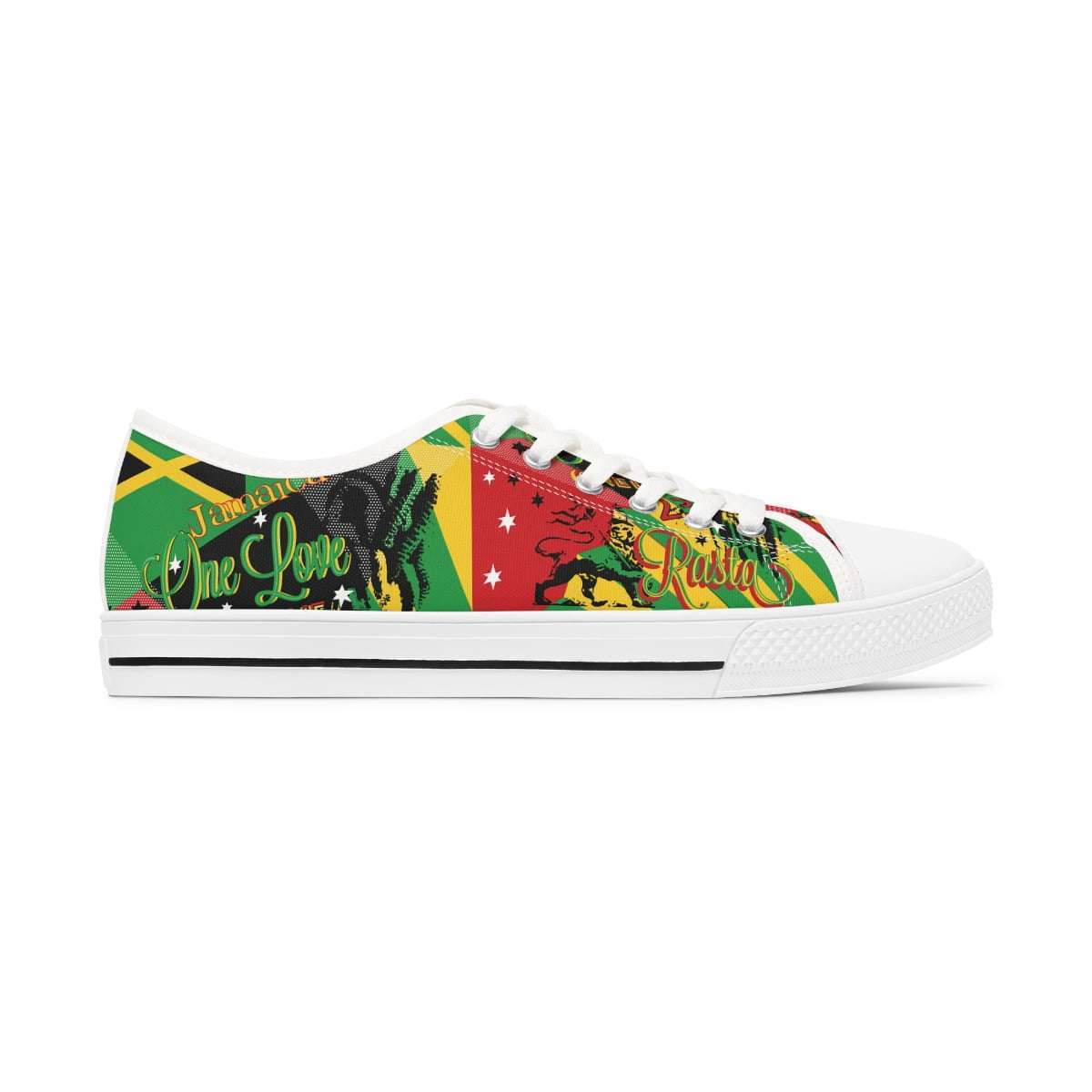 Rasta Reggae Party Women's Low Top Sneakers. Made with breathable polyester canvas and featuring hi-poly deodorant memory foam insoles, these women's low top sneakers bear all the marks of an awesome shoe. Choose between black or white sole and laces, and enjoy the silver metal eyelets along with the lace-up closure. Add your designs and bring a bespoke staple to life.