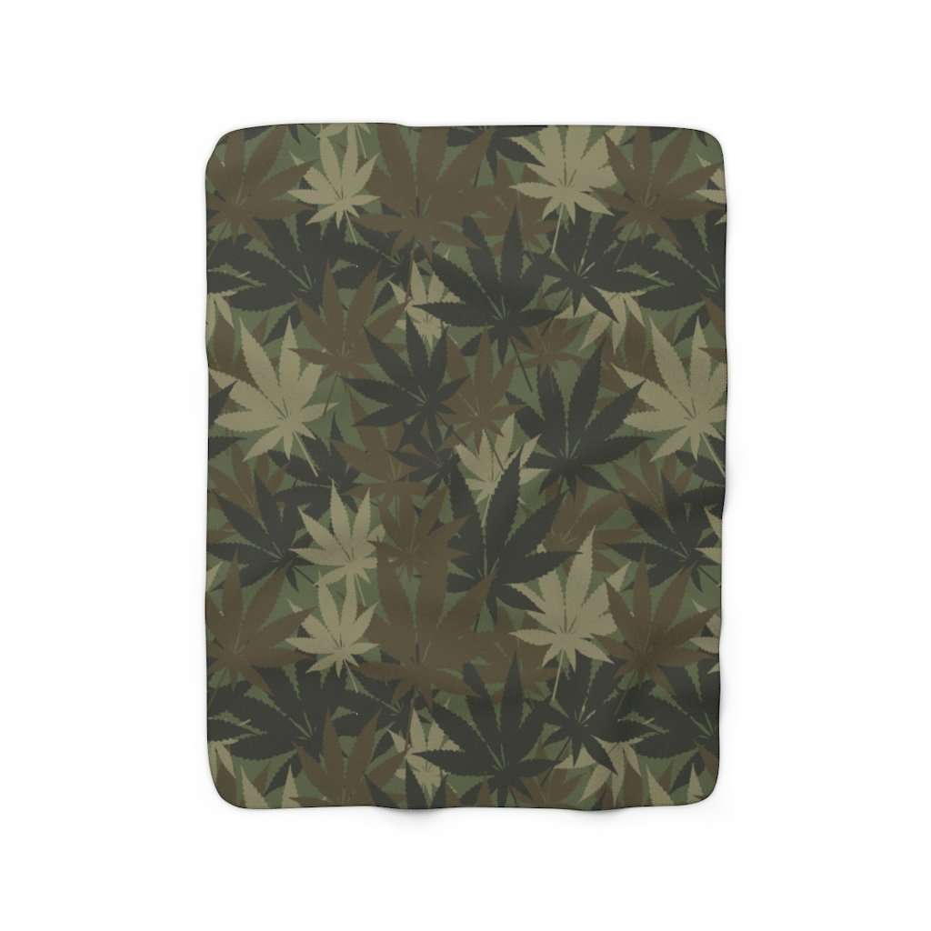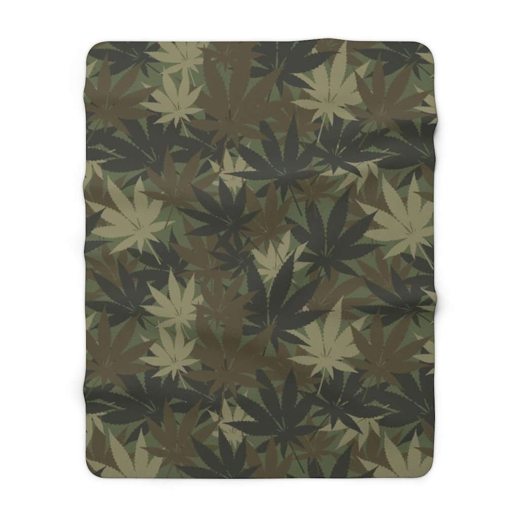 Hemp Camo Rasta Sherpa Fleece Blanket. Unbelievably fluffy and warm - this high quality cozy fleece blanket is impossible to leave behind wherever one might go. The perfect size for snuggling on the couch, by the fireplace or at outdoor events.
