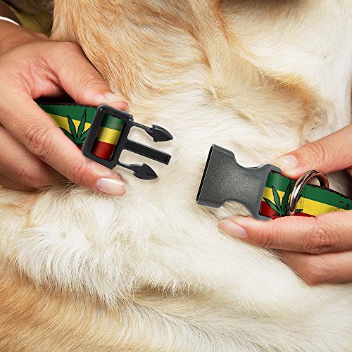 Plastic Clip Collar – Marijuana Leaf Repeat Rasta – Narrow-Small 6-9″