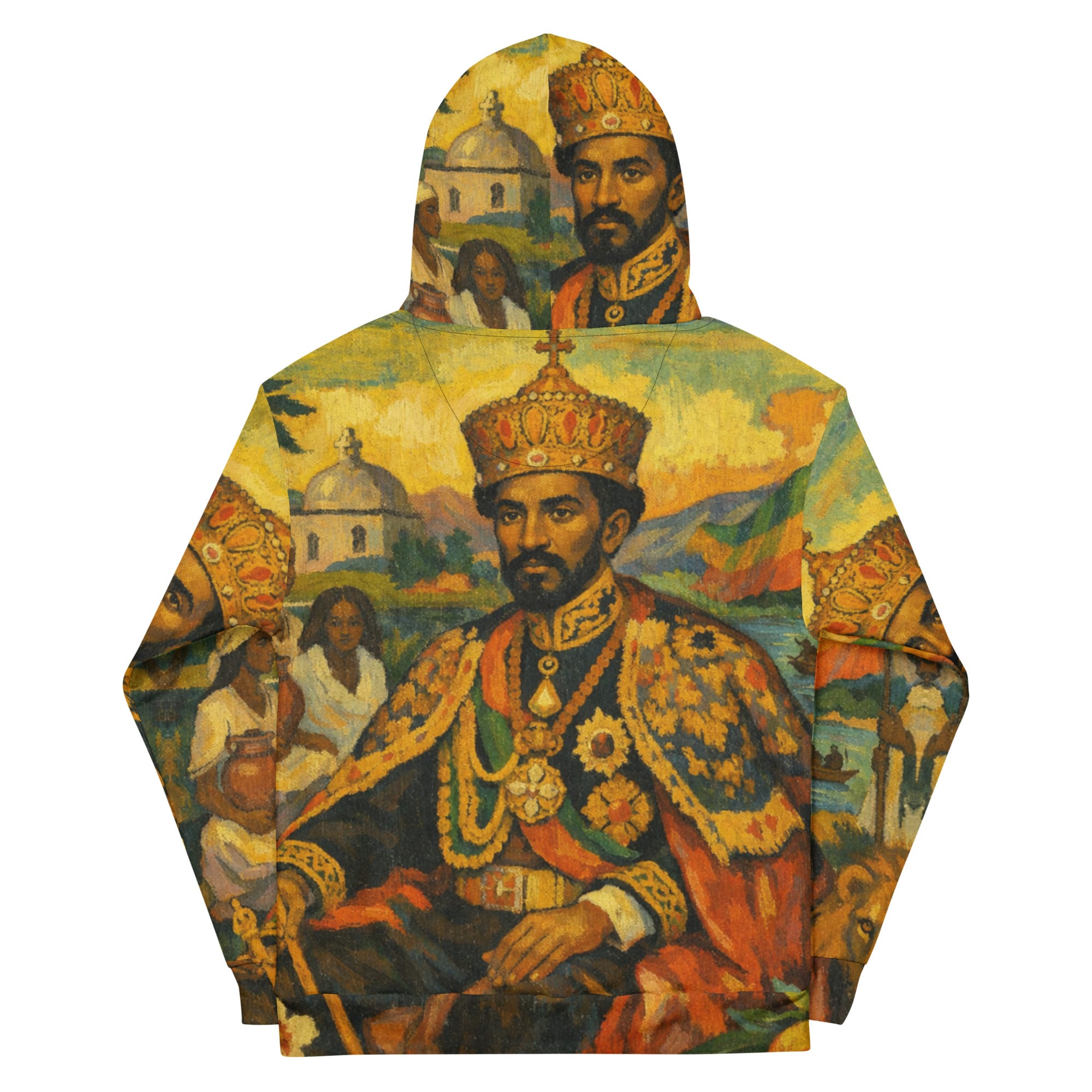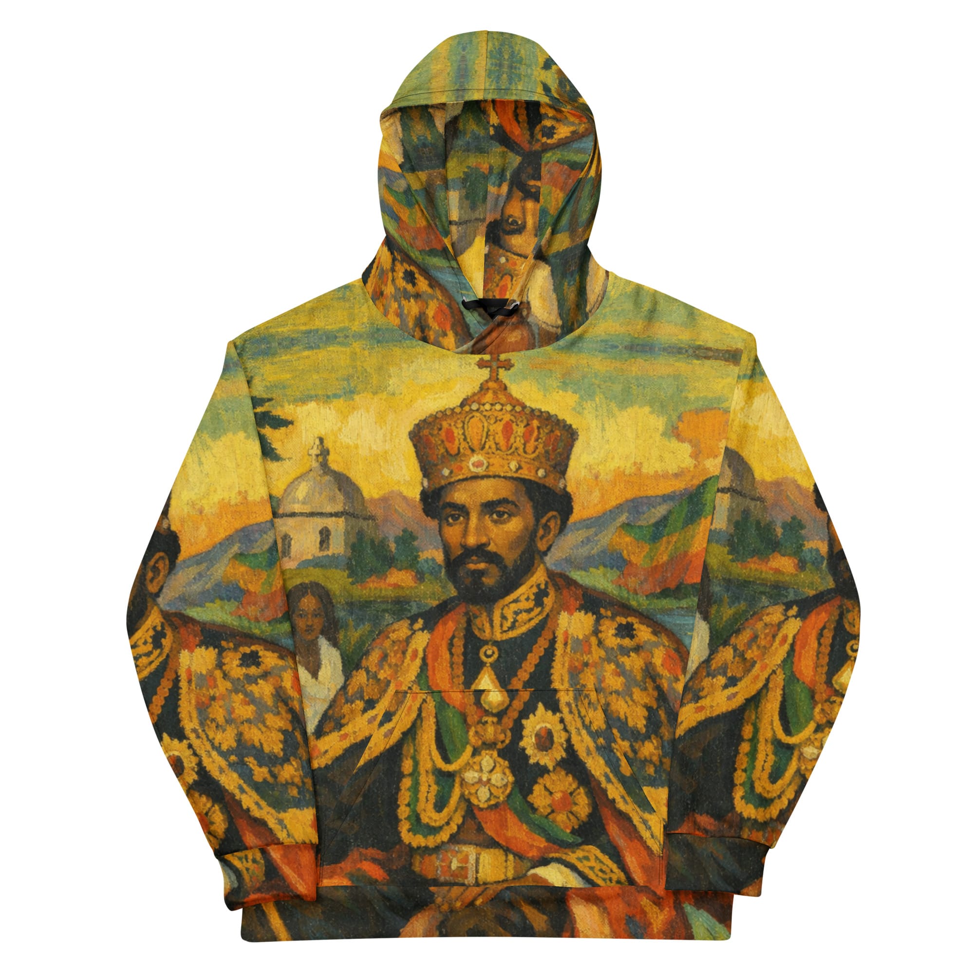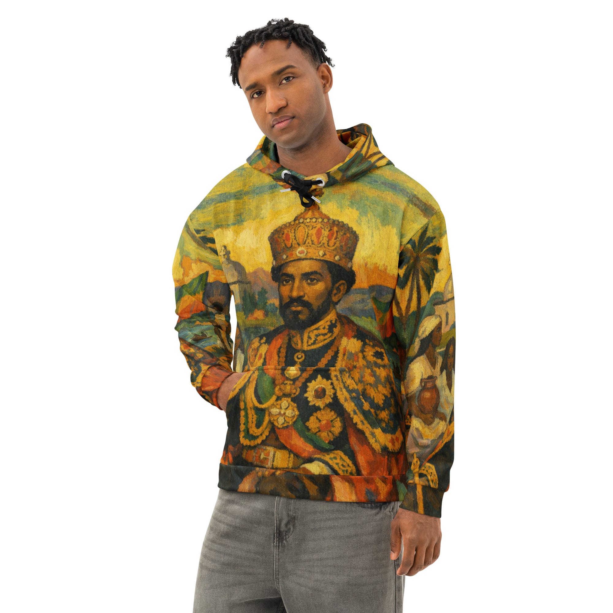 Emperor Haile Selassie cotton hoodie blends comfort with style. Its unisex relaxed fit and soft cotton fabric make it perfect for casual looks, while the all-over print design lets you create unique and eye-catching styles. Premium quality and design.
