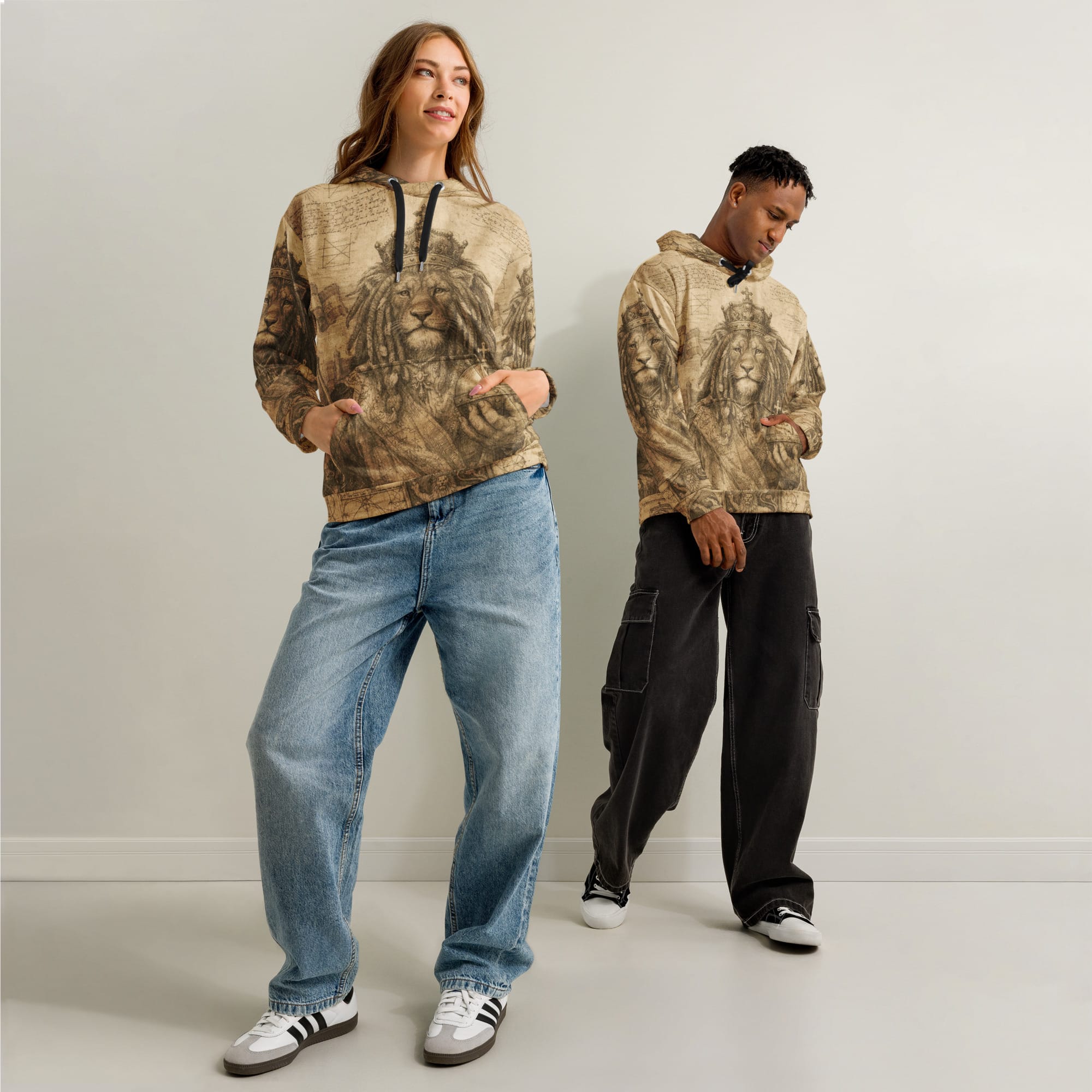 Lion of Judah cotton hoodie blends comfort with style. Its relaxed fit and soft cotton fabric make it perfect for casual looks. Unique antique finish Lion of Judah design at Rastaseed Rastafarian Jamaican and Reggae merchandise and clothing.
