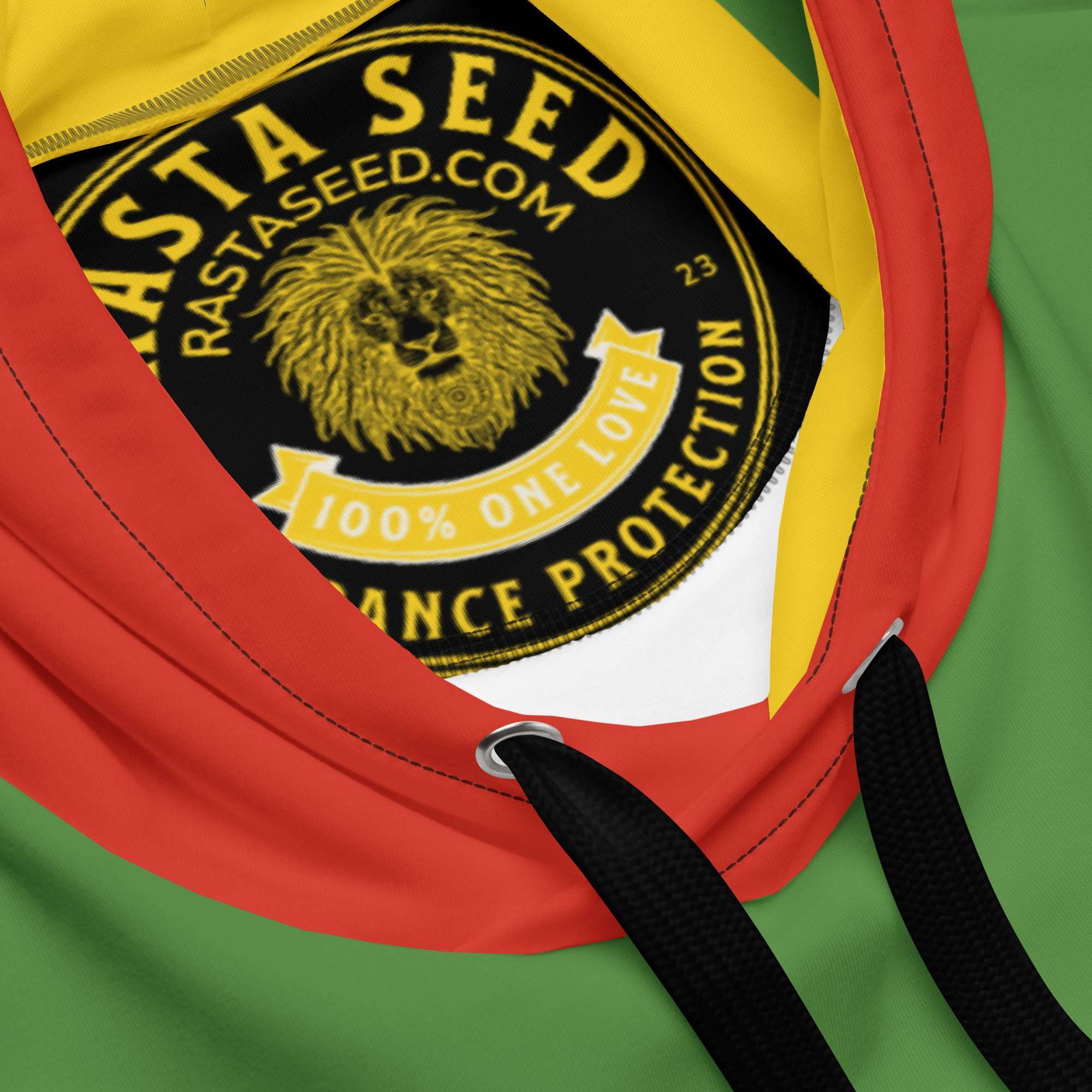 This comfy Rasta hoodie has a soft outside with a vibrant print and an even softer brushed fleece inside. This unisex hoodie has a relaxed fit and lion of judah design in the Rasta colors, and it's perfect for wrapping yourself into on a chilly evening.