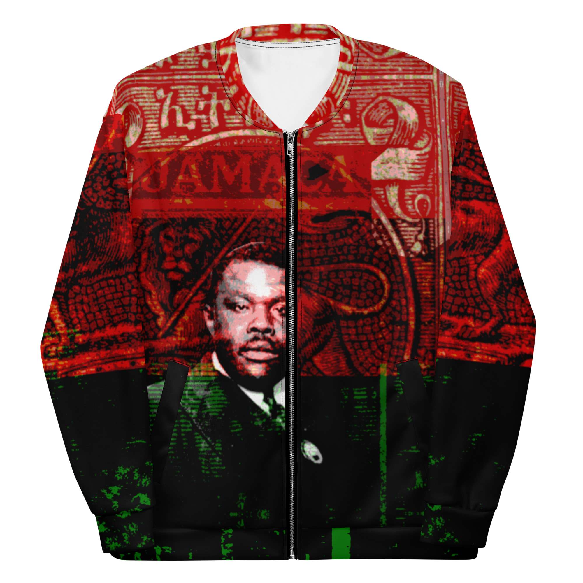 Add a little zing to your wardrobe with this vibrant All-Over Print Garvey Revolutionary Bomber Jacket. Wear it on a basic t-shirt, or layer it on top of a warm hoodie—it’ll look great either way. With a brushed fleece inside, and a relaxed unisex fit, this Bomber Jacket is just the stuff of the dreams, so be quick to grab yourself one!